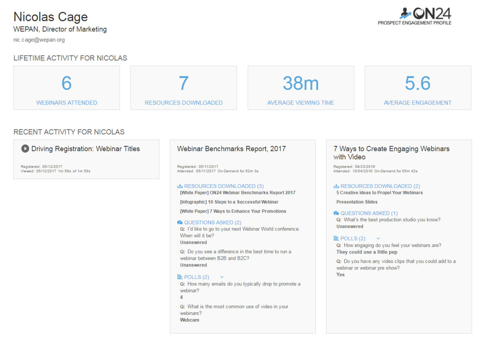 Webinar marketing platform ON24 launched its Prospect Engagement Profile, which is designed to translate webinar engagement into intelligence. This is intended to help marketers better understand a customer’s buying intent and deliver that knowledge to their sales counterparts.